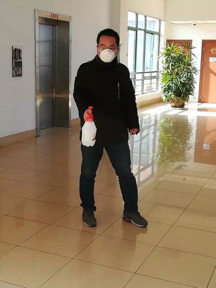 物业中心校区主任殷建表示,疫情就是命令,防控就是责任,岗位就是行动,作为党员干部,应该挺身而出,冲锋在前,坚决打赢疫情防控阻击战。物业中心服务员王云霞每天协助做好校区的公共场所的消毒工作,她表示,2020年的春节很特别,疫情当前,我们大家团结一心,为武汉加油,为中国加油。