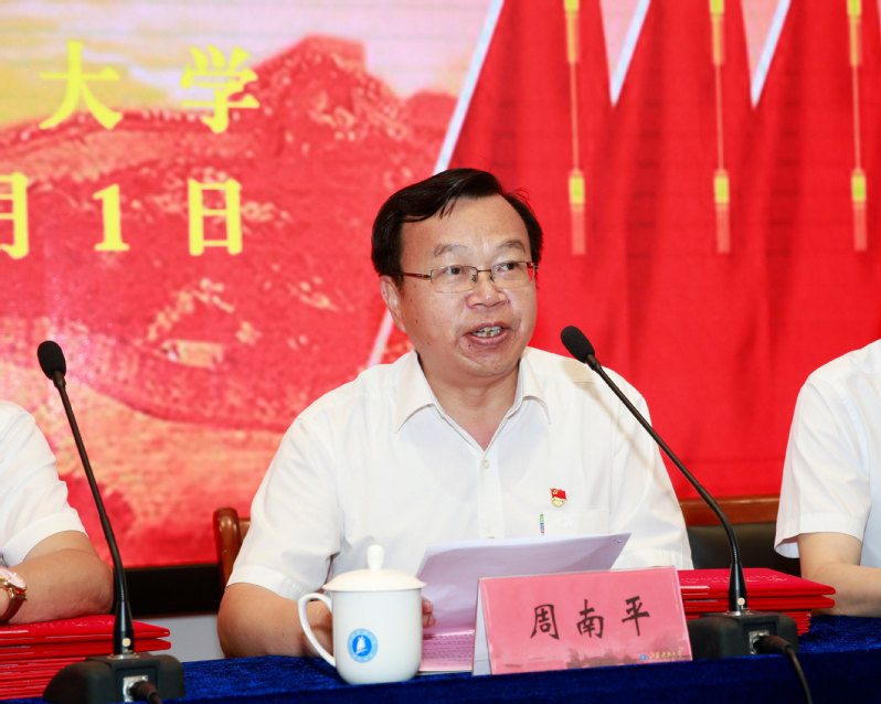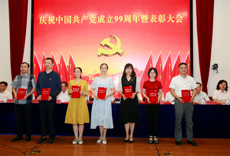 7月1日,学校在演讲厅举行庆祝中国共产党成立99周年暨表彰大会,校党委书记葛世伦,党委副书记、校长周南平,党委副书记、副校长景旭文,副校长王加友,党委常委、副校长汤建、姜朋明、俞孟蕻,党委常委、纪委书记、派驻监察专员郑培钢,党委常委、副校长谈镇、嵇春艳,党委常委李恒川、周春燕、刘新波出席大会。党委副书记、校长周南平主持会议。