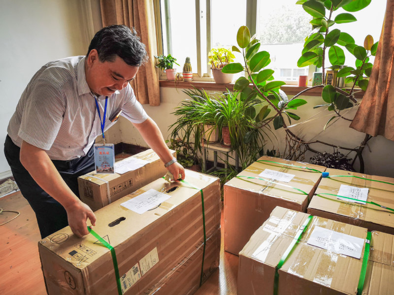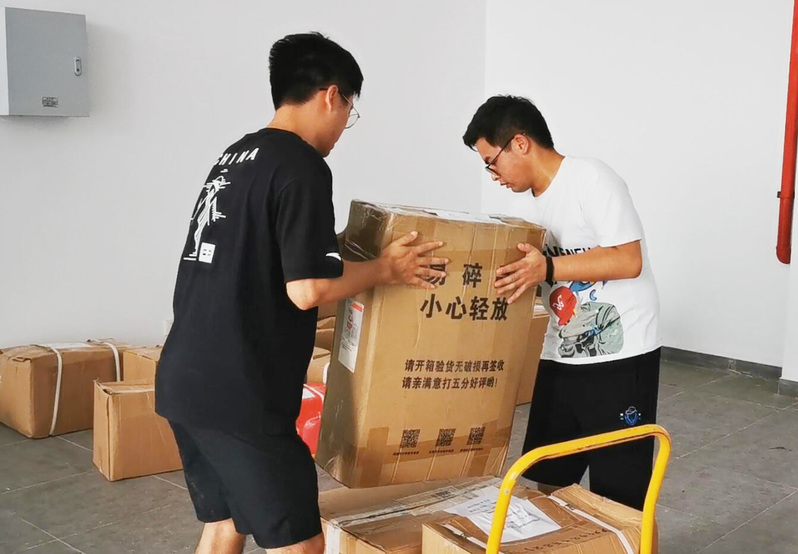 设备数量多、比较重,电信学院辅导员董会告诉记者,马继先老师为沉重的设备台焊上了转向轮,既提高了搬运效率也减轻了工人压力,随后陪工人一起装卸设备,汗水浸满衣衫。