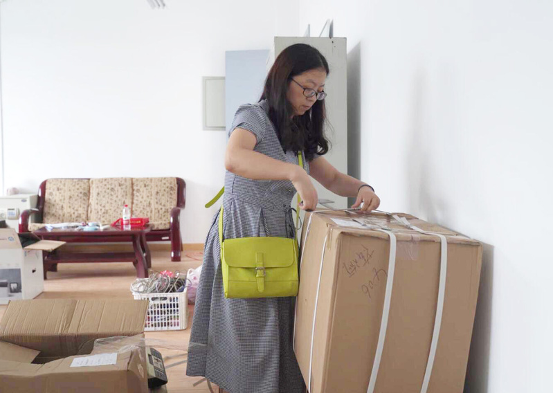 学院教务办的搬迁教学资料比较多,前期要花大量时间仔细整理,工作繁杂琐碎,人文社科学院教务办主任包律婷一直在忙着核对,清理搬到新校区的教务资料。打包的时候,仅教务资料这一块儿,就有40箱。包律婷说,“这是一件比较繁琐的事情,不仅需要体力,而且还要很细心。”搬到新校区的最高层,环境很好,包律婷觉得心情也很舒畅。人文社科学院公共事业管理专业2017级学生许永俏准备考研,7月4日就搬到了新校区,除了学习备考,许永俏还帮着学院搬迁,做些力所能及的事,人文社科学院男生比较少,大部分都是女孩子,大家虽然力气不大,但是一起清点打包搬运摆放,团结协作,老师还经常关心大家吃饭没有,关心大家累不累,感觉人文大家庭的氛围特别好。公共管理系党支部副书记赵丽娜告诉记者,搬家时找不到地方,后勤工作人员直接开车把她送到文理大楼,特别感动。