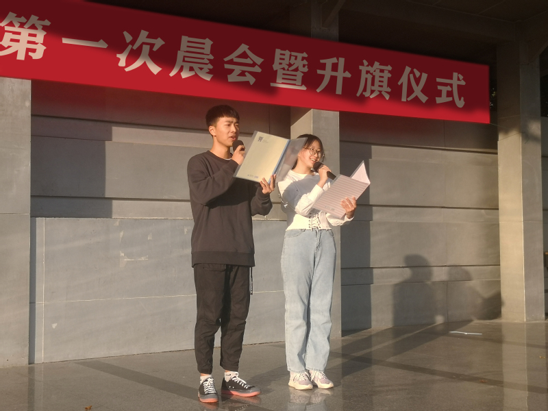 6点35分,阳光才刚刚与绿茵场相遇,同学们早已整好队伍等候入学后的第一次升旗。庄严的国歌响起,同学们目光凝聚,注视那面冉冉升起的国旗,他们用坚毅且充满活力的眼神响应祖国殷切的期盼。