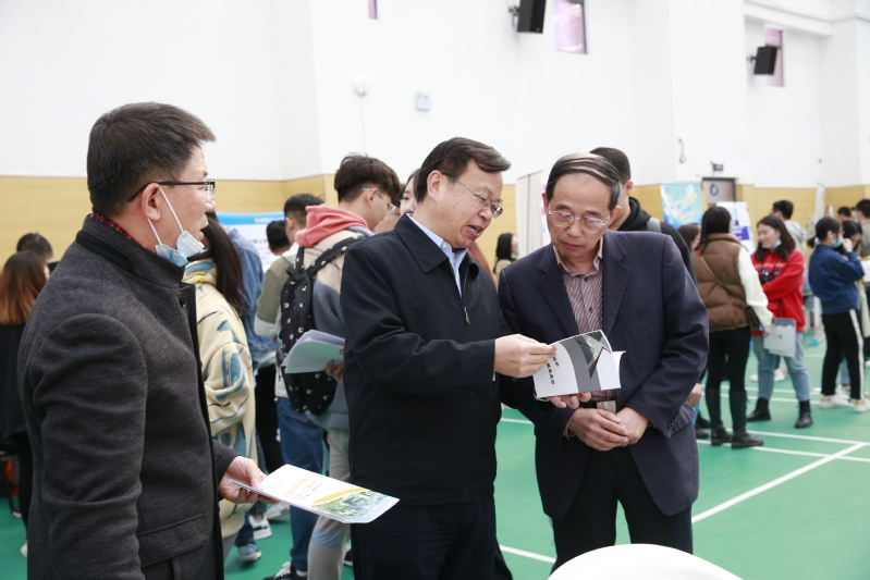 周南平校长亲临指导,巧遇提前到会场感受招聘氛围的深蓝学子,周校长鼓励学生做好生涯规划,了解就业目标并早尽早做准备,过一个充实而有意义的大学生活;会场中,周校长与辽宁省人才市场的负责同志亲切交流,希望校地双方能够开展深层合作。周校长对本次活动及就业工作表示肯定的同时指出:我校毕业生就业质量仍需提高,应吸引更多国企、央企、世界500强等高层次企业进校招聘,可以根据学科类别分别举办专业特色型招聘会。