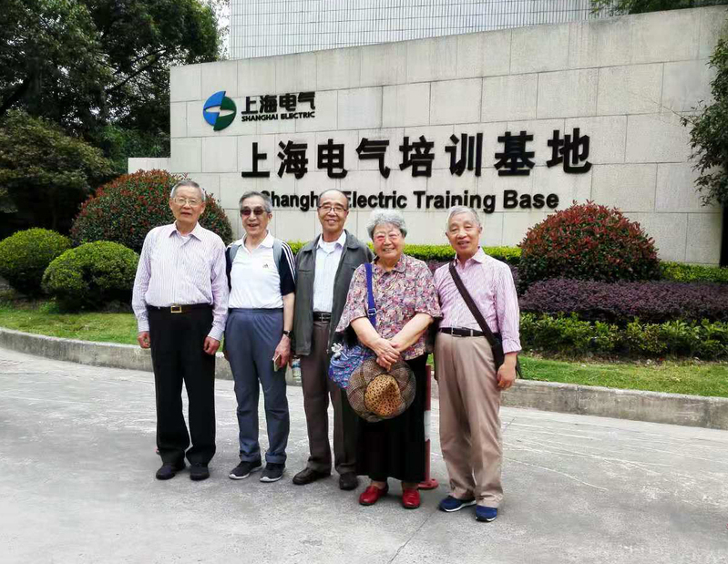 2018年原上海船校焊309班5位同学,为纪念毕业60周年重返母校,在原校门口留影