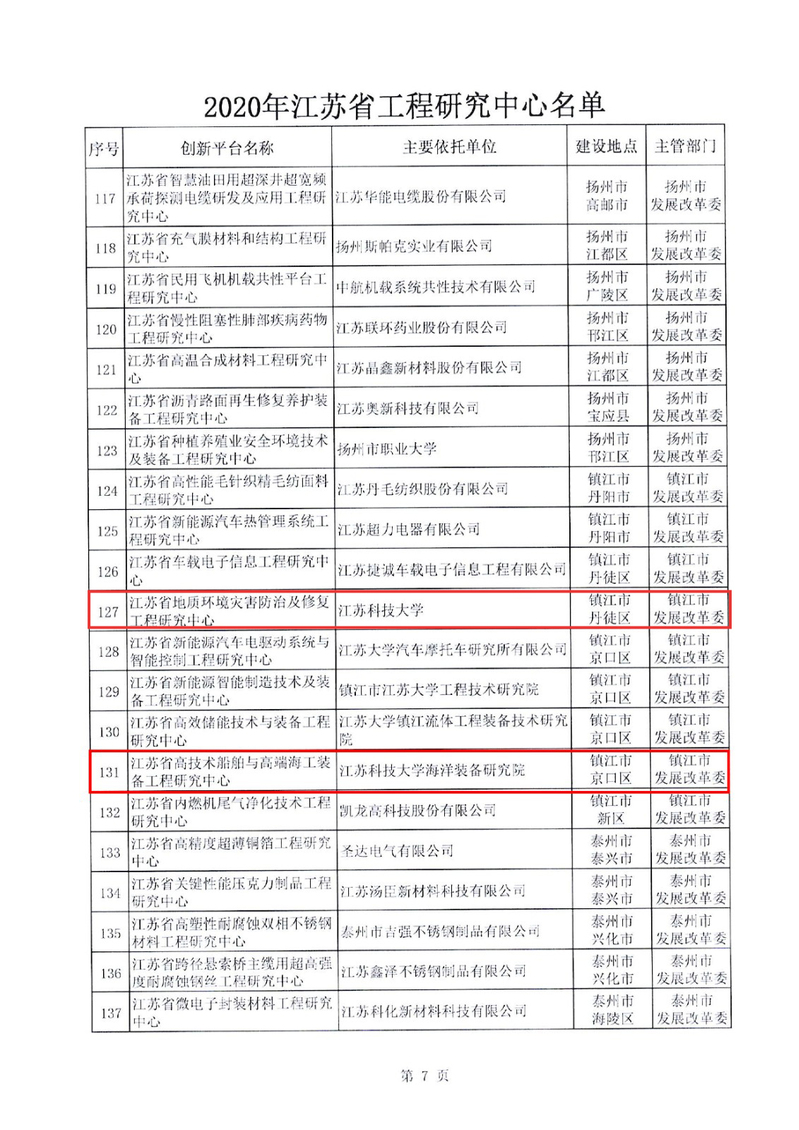 近日,江苏省发展和改革委员会印发了《关于同意建设2020年江苏省工程研究中心的通知》,乐竞在线平台(中国)官网土木工程与建筑学院岩土工程团队申报的“江苏省地质环境灾害防治及修复工程研究中心”、海洋装备研究院申报的“江苏省高技术船舶与高端海工装备工程研究中心”获批立项建设。