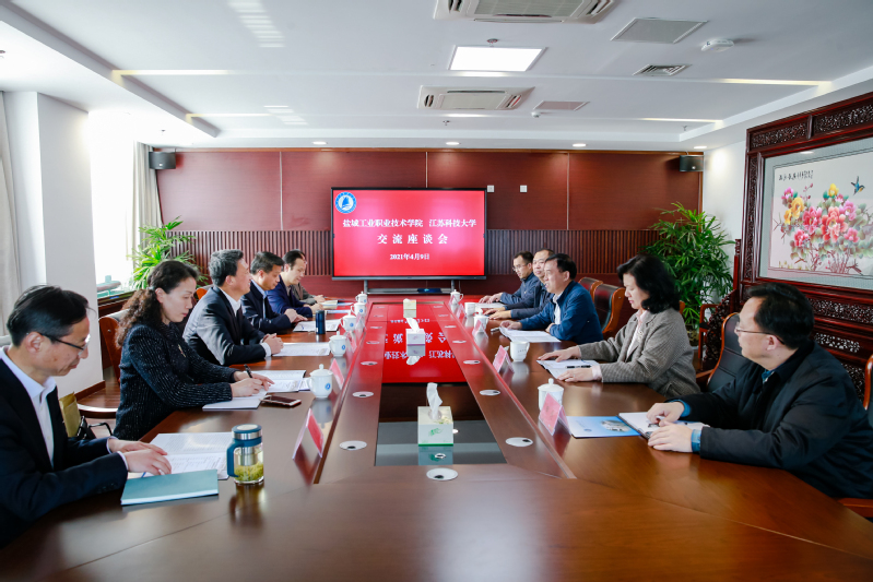 4月9日下午,盐城工业职业技术学院党委书记邵从清、校长瞿才新一行来我校调研交流。校党委书记葛世伦,党委常委、副校长嵇春艳参加调研座谈。