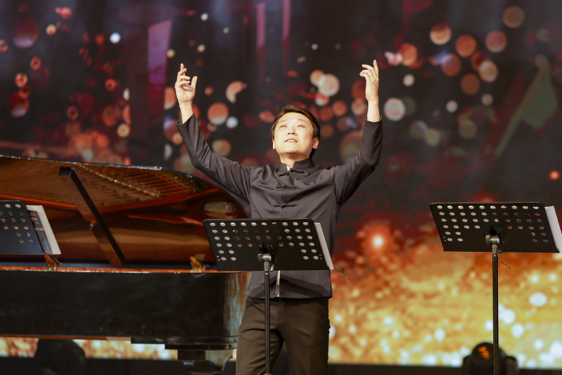 《没有共产党就没有新中国》旋律响起,全场人员不约而同鼓掌,随着音乐节拍,唱响青春理想,祝福伟大祖国。