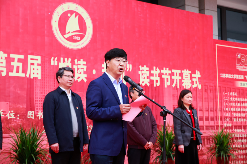 为庆祝中国共产党成立100周年,引领师生诵读百年党史,传承红色经典,4月22日下午,在第26个“世界读书日”到来之际,乐竞在线平台(中国)官网第五届“悦读·起航”读书节开幕式暨党史阅读马拉松挑战赛启动仪式在长山校区图书馆南门隆重举行。校党委副书记、副校长景旭文,校党委常委、宣传部长周春燕出席开幕式。学生处、工会、团委等职能部门负责人,图书馆全体馆员、党史阅读马拉松参赛选手、读者协会会员以及师生代表一同参加了开幕式。开幕式由图书馆党总支书记王明强主持。