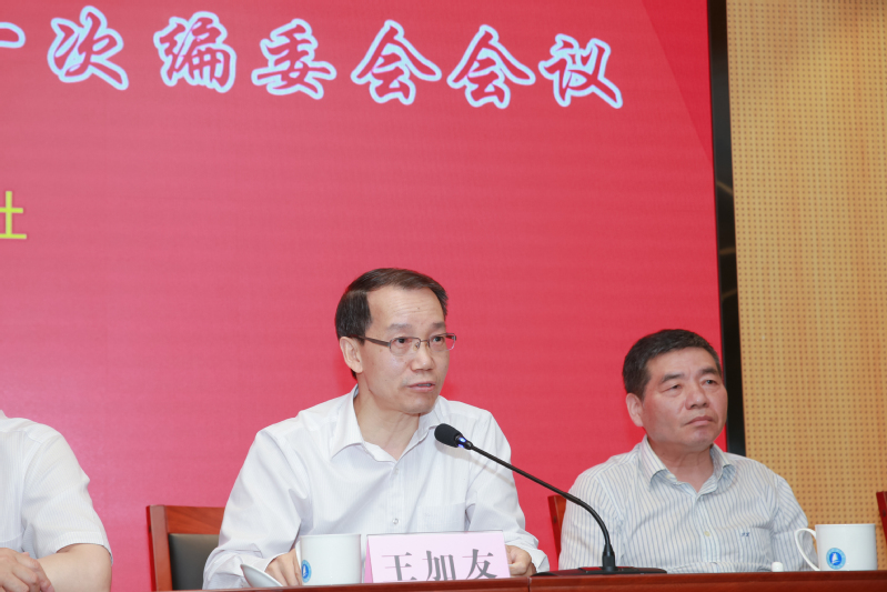 副校长王加友对新一届编委会当选委员表示祝贺。他充分肯定了学术期刊近年来在促进人才培养、科学研究、学科建设等方面发挥的重要作用和取得的显著成绩,希望期刊社积极与学院、部门协同合作,充分发挥编委的作用和资源,探索期刊与学术研究、职称评定之间的激励评价机制,围绕学术期刊评价体系的指标机制,形成优质稿源的吸引机制,加强与行业、协会与学术期刊同行之间的沟通和交流,促进学校学术期刊高质量发展。