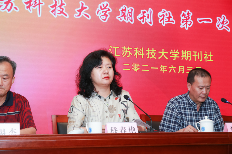 副校长嵇春艳宣读《关于调整<乐竞在线平台(中国)官网学报(自然科学版)><乐竞在线平台(中国)官网学报(社会科学版)>编辑委员会组成人员的通知》和《关于调整<现代面粉工业><中外船舶科技>编辑委员会组成人员的通知》。