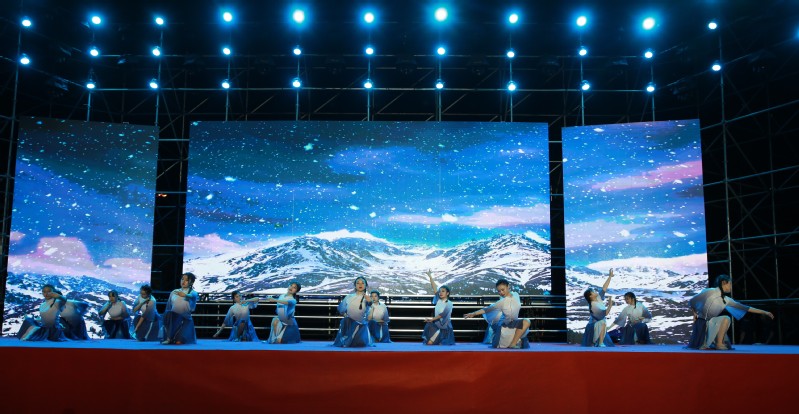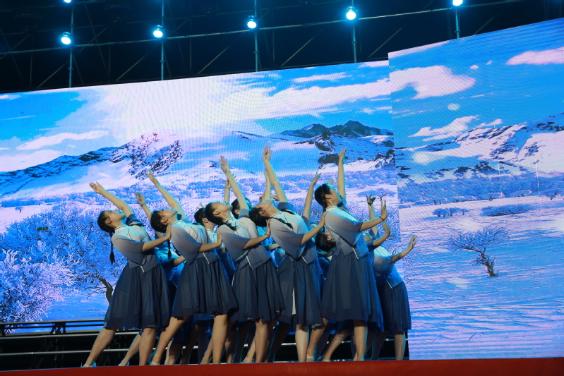 江山如此多娇。大学生艺术团舞蹈队带来的中国舞《沁园春·雪》意境优美,气势恢宏。