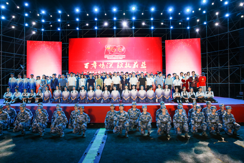 为热烈庆祝中国共产党成立100周年,6月5日晚,深蓝学院党总支在梦溪校区体育场隆重举办“百年情深,绽放蔚蓝” 文艺晚会。校党委副书记、副校长景旭文,党委常委、副校长汤建,党委常委、副校长任南及党委常委、宣传部长周春燕出席并观看了晚会,学校相关职能部门领导,各学院院长、书记及副书记等到场观看,深蓝学院全体师生4000余人参加了晚会,离退休工作处、附属幼儿园和中国船舶集团有限公司中层干部工商管理培训班全体学员参演了晚会。