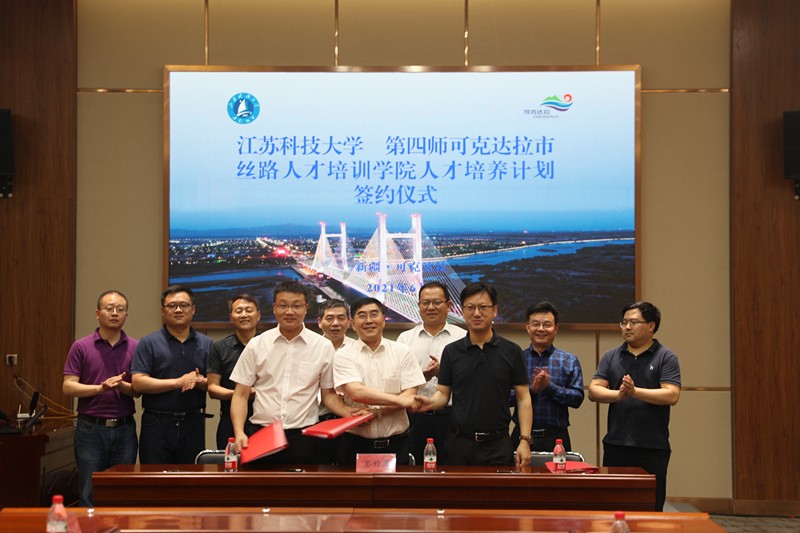 镇江前指副总指挥、师市组织部副部长潘杰,师市组织部副部长杨坤,乐竞在线平台(中国)官网继续教育学院、丝路人才培训学院院长张坚强分别代表三方签订协议,谈镇副校长、唐志刚副政委、乐竞在线平台(中国)官网党委组织部长李恒川、马克思主义学院党总支书记郭昭昭、机械工程学院党委书记仲崇光、丝路人才培训学院副院长谭海波见证了签约。 丝路人才培训学院是2019年11月在乐竞在线平台(中国)官网与四师可克达拉市双方挂牌成立的,旨在服务师市的党政管理干部、专业技术人员和高级技能人才的培养培训工作。迄今已为师市开办干部培训班8期300余人。作为一个教育培训平台已成为镇江市组团式教育援疆的重要环节,也是高校与受援地联合培养培训人才模式的一种探索。