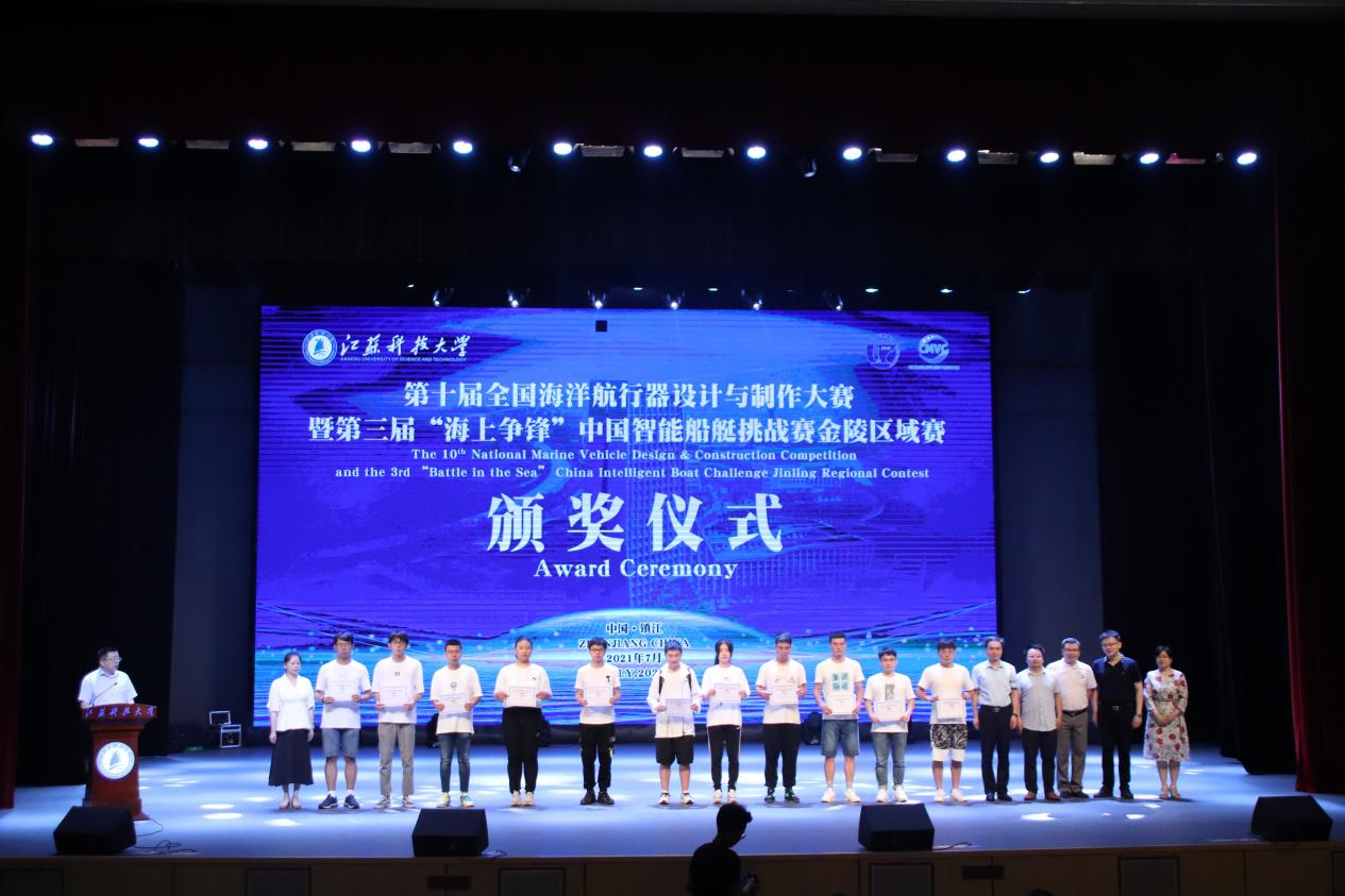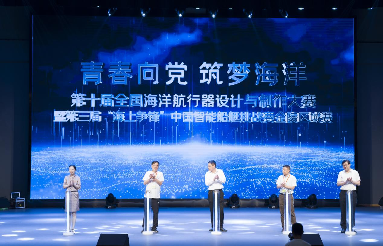 7月12日,第十届全国海洋航行器设计与制作大赛暨第三届“海上争锋”中国智能船艇挑战赛金陵区域赛闭幕并且进行颁奖,与会嘉宾为参赛选手颁奖。