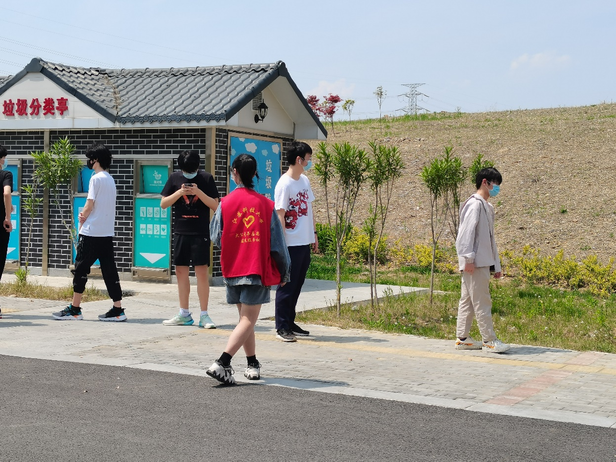 每次全员核酸,团委的七位党员老师都会提前赶到现场并参与全场志愿服务。“我们有信息采集的志愿者‘大白’,有核酸检测点门口的志愿者‘小蓝’,还有维持排队秩序的志愿者‘红马甲’,针对不同情况的志愿者,准备了不同的物资。”团委张冬冬老师介绍,为应对学生核酸顺序排队,已经“将东西两个操场作为缓冲区,让学生以班级为单位网格化管理,避免了人员的大幅度聚集。”