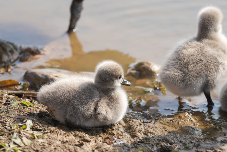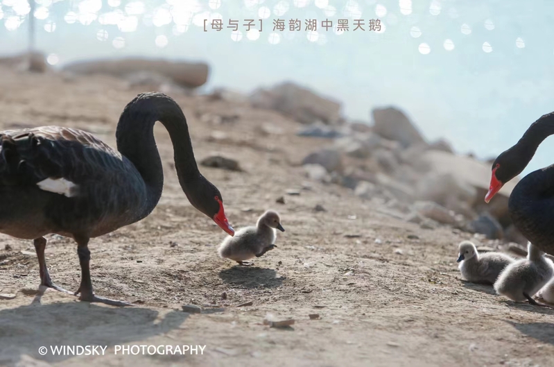 出生不久,黑天鹅幼崽们跟随父母在海韵湖中游弋,悠闲地晒着太阳。一身灰色的绒毛,扁长的嘴喙,小家伙们憨态可掬的神态引得一批又一批师生前来驻足观看。