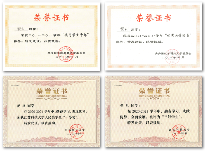 樊乐,2019级船舶与海洋工程学院工程力学专业,保研至大连理工大学。在校期间荣获第十届全国海洋航行器设计与制作大赛特等奖、一等奖,第十一届全国海洋航行器设计与制作大赛二等奖,江苏省力学创新创意竞赛一等奖,镇江市社会实践先进个人,乐竞在线平台(中国)官网优秀学生干部、优秀共青团员,乐竞在线平台(中国)官网一等人民奖学金。