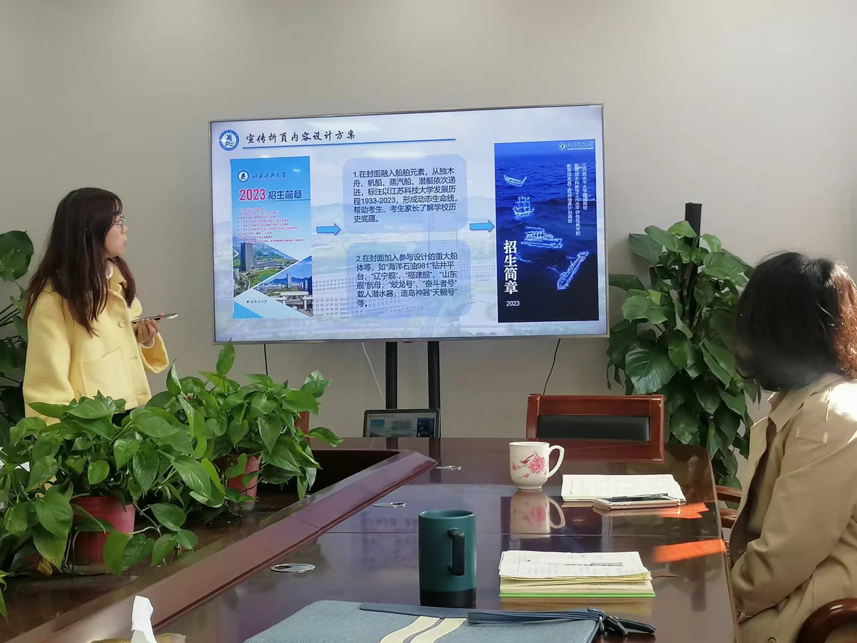 在交流研讨阶段,各学院结合目前“学院—地区”招生宣传工作模式下的工作经验和各地实际,围绕招生宣传策略、优质生源拓展、招生宣传队伍等方面分享经验。各学院分别就若干本版的宣传彩页提出了具体修改意见、板块设计方案以及最终效果预览;提议了1-2项创新性招生宣传产品或服务,概述产品或服务的设计立意、实现渠道和预期成效;按时间节点,条目式陈述了所负责地区江苏首批20所高品质示范高中生源提升工作方案;介绍了前期生源地回访工作进展和近期安排。各学院还就组建招生宣传队伍、将各专业就业方向、岗位等资讯更好融入招生宣传等方面畅所欲言,现场气氛热烈。