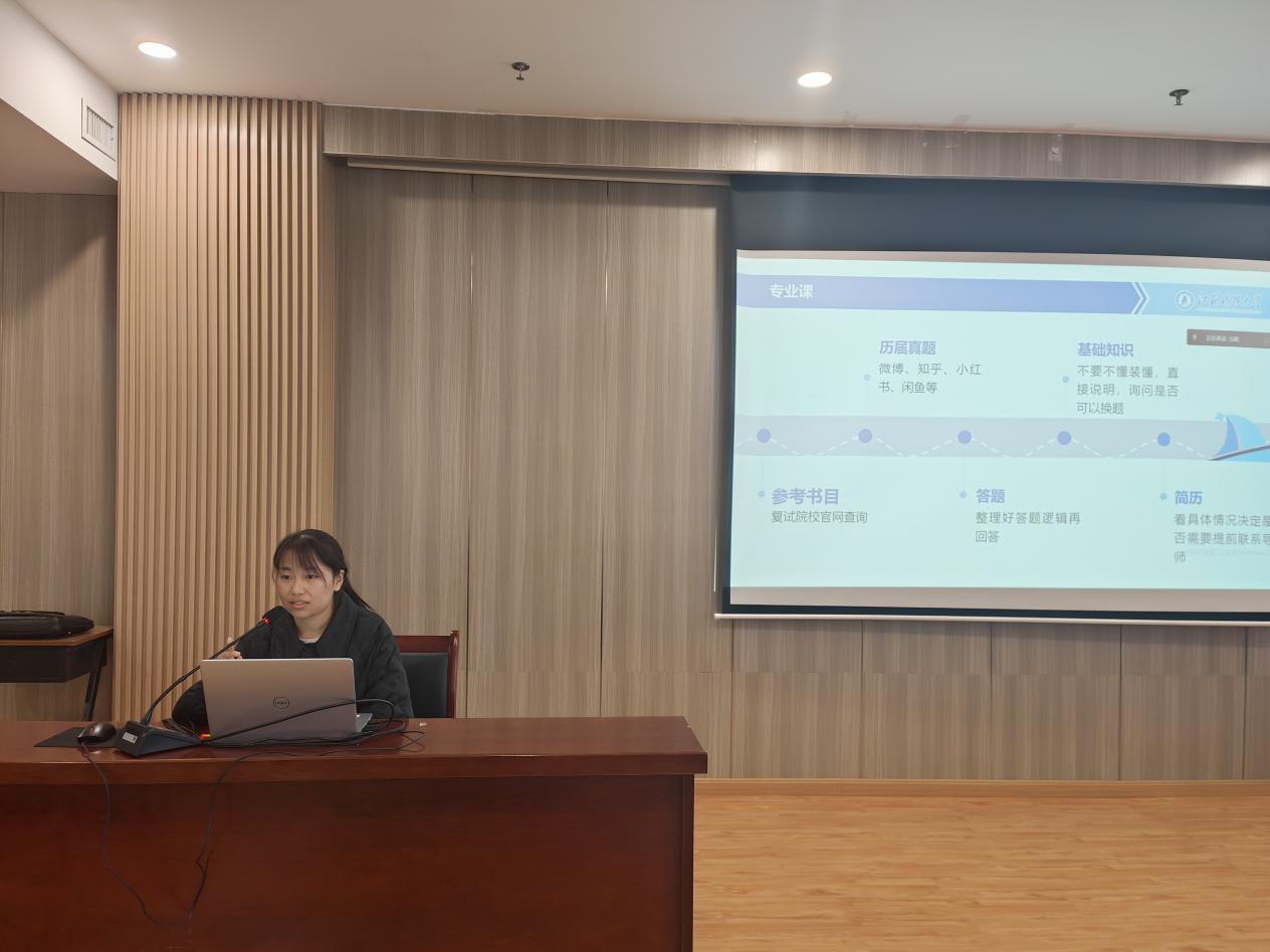 3月1日下午,理学院在文理大楼1150报告厅举行2023届本科毕业生考研复试指导会。院长戴俊、三位在读研究生为考研初试成绩达到2022年国家线的同学们“传经送宝”,会议由辅导员孙莞主持。