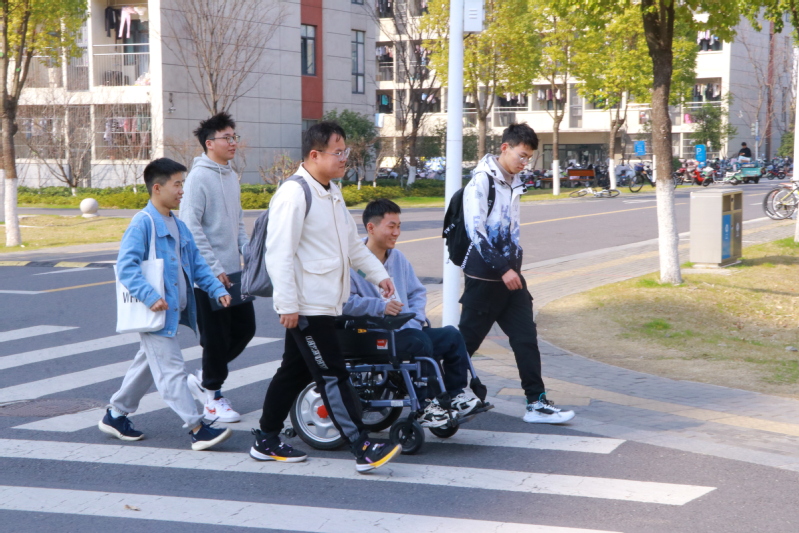 乐竞在线平台(中国)官网海洋学院的陈帆因患先天性肌肉萎缩症,需靠轮椅出行,学习生活多有不便。幸运的是,在校园里,他与同专业的五名同学:张兴韧、尹鸣、王胤凯、王铭、梁健闯相识、相交、相知、相伴。上课、打饭、拿快递、打扫卫生......在四季三时,在学校各处,都有好朋友们陪伴与帮助陈帆的身影,汇聚成江乐竞在线平台(中国)官网校园里温暖有爱的风景。陈帆介绍几位好友道,“他们可不仅仅是热心同学,他们是我最好的兄弟!”