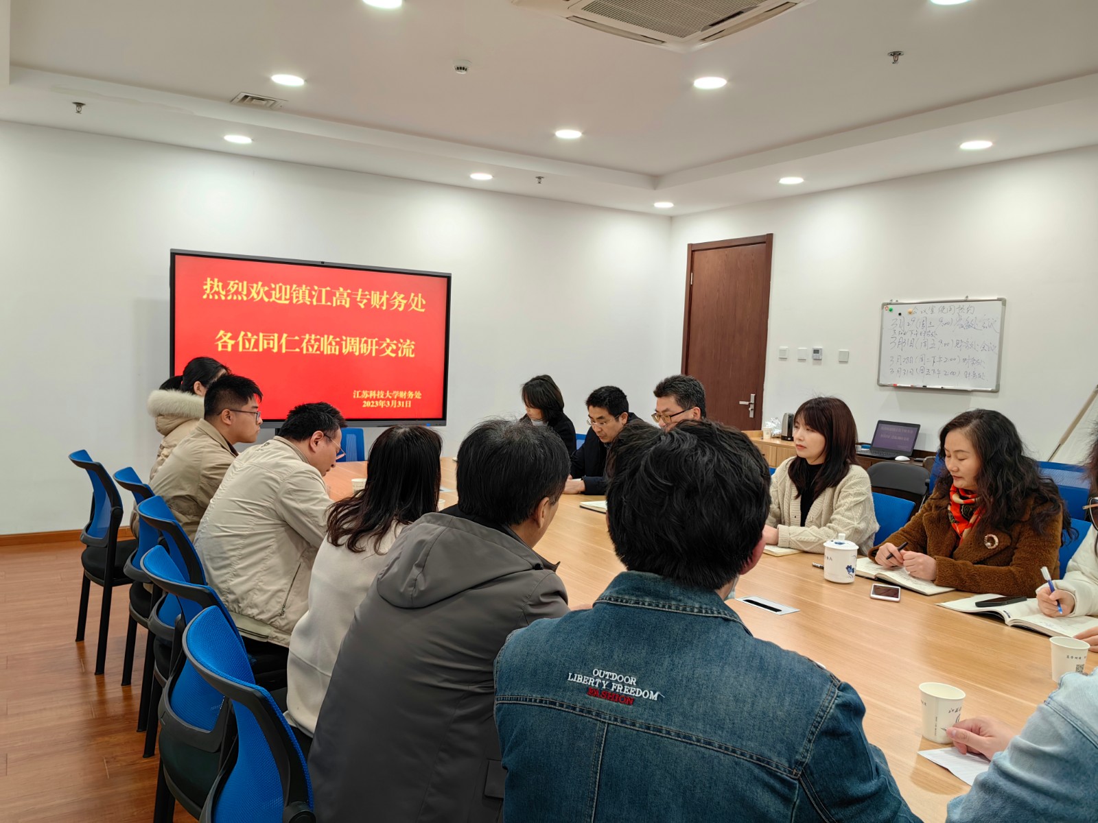 3月31日上午,镇江高等专科学校财务处处长周文华一行9人来我校财务处调研。我校财务处处长江建蓬,副处长岳喜马、凌芸,教职工代表出席会议。