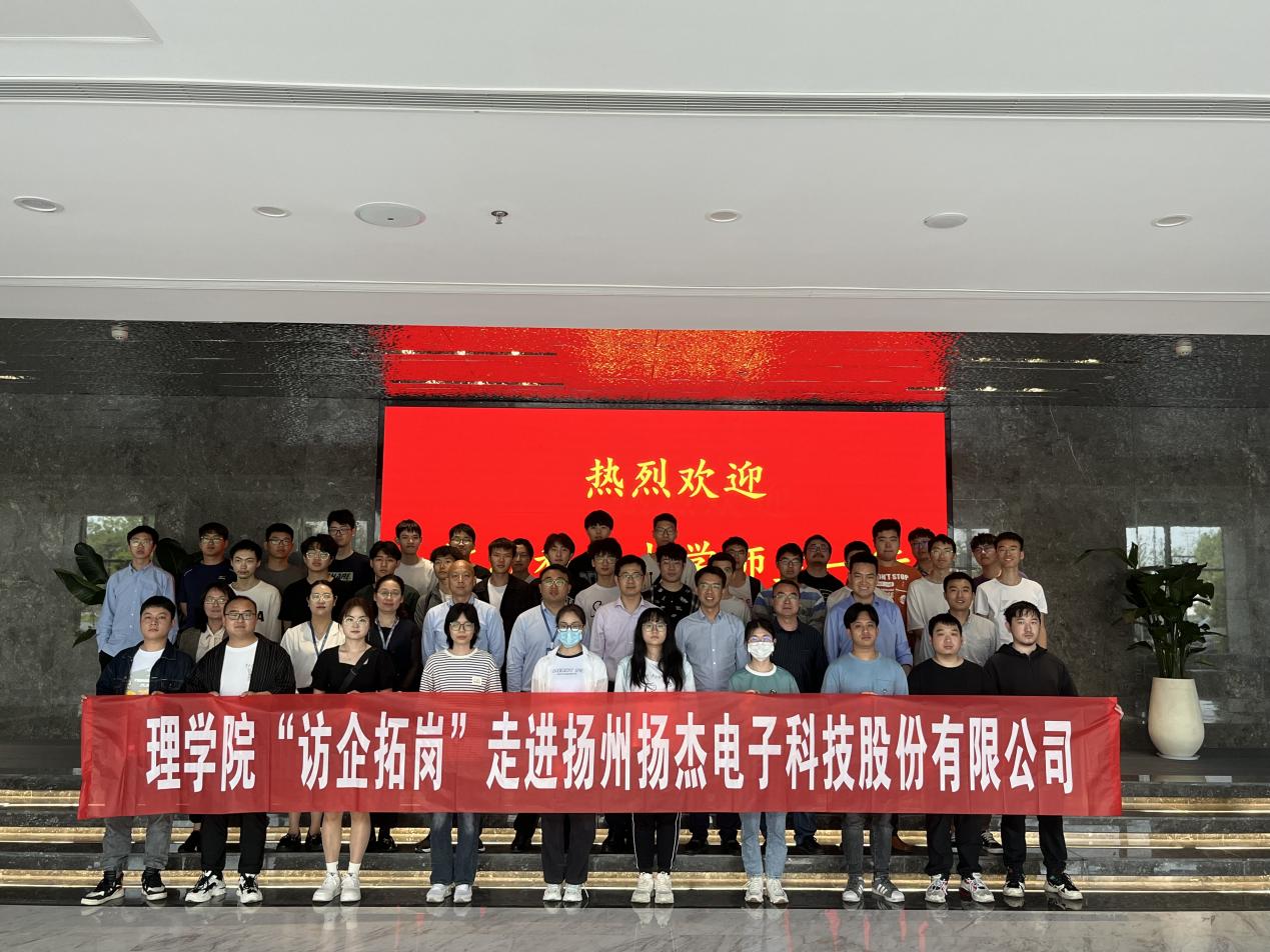 4月18日下午,理学院院长戴俊、党委书记徐文睿、副院长郭纪源、党委副书记周志辉、应用物理及光电信息党支部书记胡友友与应用物理专业师生一行40余人赴扬州扬杰电子科技股份有限公司开展党建联盟协议签约,访企拓岗促就业专题活动。