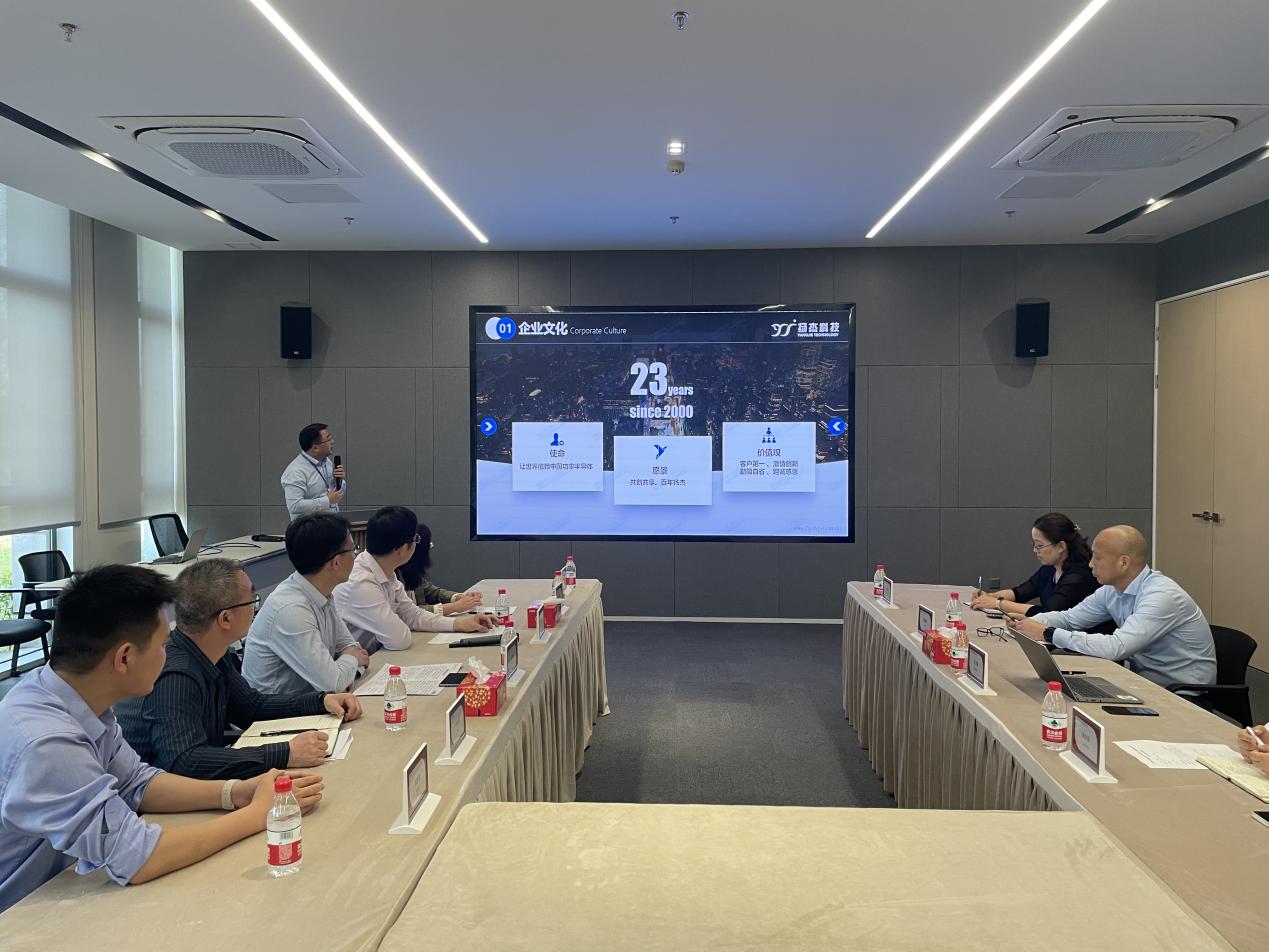 戴俊介绍了学院办学历史、师资力量、学科建设、办学成效以及人才培养等方面的情况,并向企业推荐学校优质毕业生。徐文睿介绍了学院在党的建设、人才培养、对外交流等方面的做法,希望双方可以在党建共建、人才培养、校企协同育人等方面探讨交流并进行深度合作;郭纪源介绍了学院研究生实习基地建立、研究生工作站合作、产业教授申报方面的内容;周志辉介绍了学生实习实践、专业认知教育、企业导师设立、校企合作项目等合作意向与工作规划。