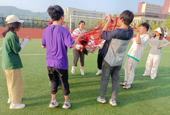 本次素拓活动包括解手链、极速60秒、快乐绳床、异口同声四个项目。现场气氛十分活跃,同学们集思广益、团结协作,欢声笑语和轻松朝气充满活动现场。在解手链活动中,不相邻的学生之间用双手织成一张乱网,并在不松开手的情况下将这张乱网解开。急速60秒要求同学们在60秒时间内将一副30张有抽象数字的卡牌按照顺序排列。卡片以谐音梗、象形字、常识性内容展出,要求参与者摆脱思维定势、发散思维能力并集中注意力。快乐绳床十分具有挑战性,利用一根绳子编制成床,能够承重一位同学并且可以让众人抛起来。“一二三,三二一,一二三四五六七”拍手游戏作为结尾环节,大家站在阳光下,异口同声,齐声高喊,素拓活动在欢乐的氛围中落幕。