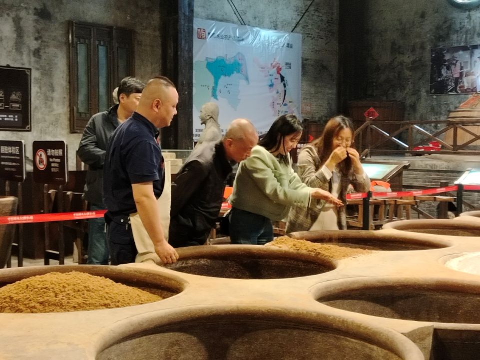 穿过文化长廊、踏进古老作坊,同学们亲身感受镇江香醋传统工艺的制醋场景。老作坊重现了工业化生产以前醋的纯手工酿造过程,场面颇为震撼。从原料到制作过程,从手工作坊到流水线生产,从香醋的种类到香醋的价值功能等,同学们感受上世纪二三十年代的传统手工酿醋技术,了解酿醋的重要步骤,体验手工制醋过程。同时品尝了醇香的古法手工酿造醋,同学表示,古法手工酿造醋与平时所吃的香醋闻起来味道不同,手工醋似乎有一股酱油的味道,入口柔顺。镇江传统香醋生产采用特殊的“固态分层发酵”工艺,2006年被国务院列入首批“国家级非物质文化遗产保护名录”。这项工艺凝聚了镇江1000多年的酿醋精髓,代表了中国南方酿醋技术的传统特色和最高水平,具有极高的历史、文化和社会价值。