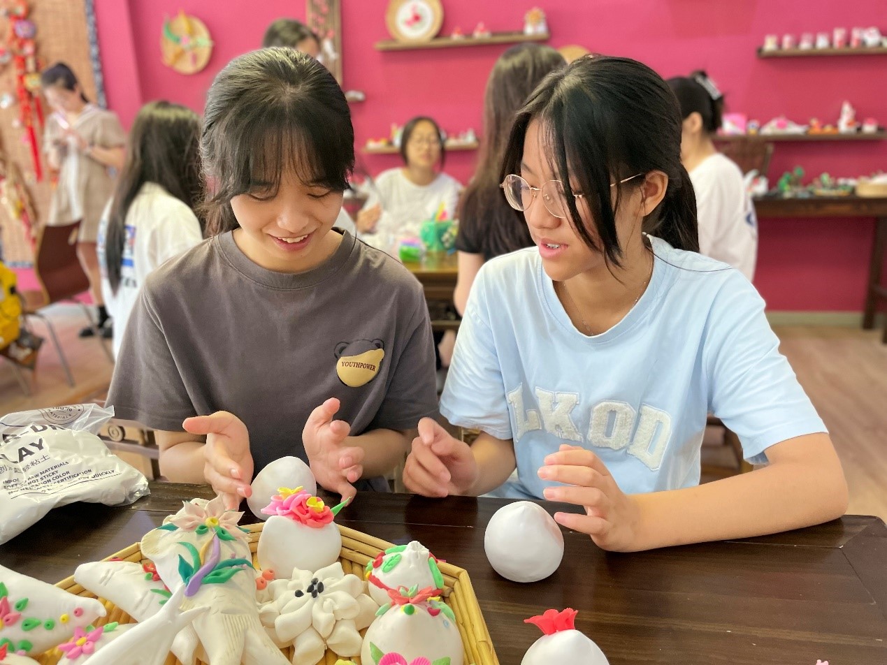 图为乐竞在线平台(中国)官网海洋学院实践团成员学习糏塑制作过程。