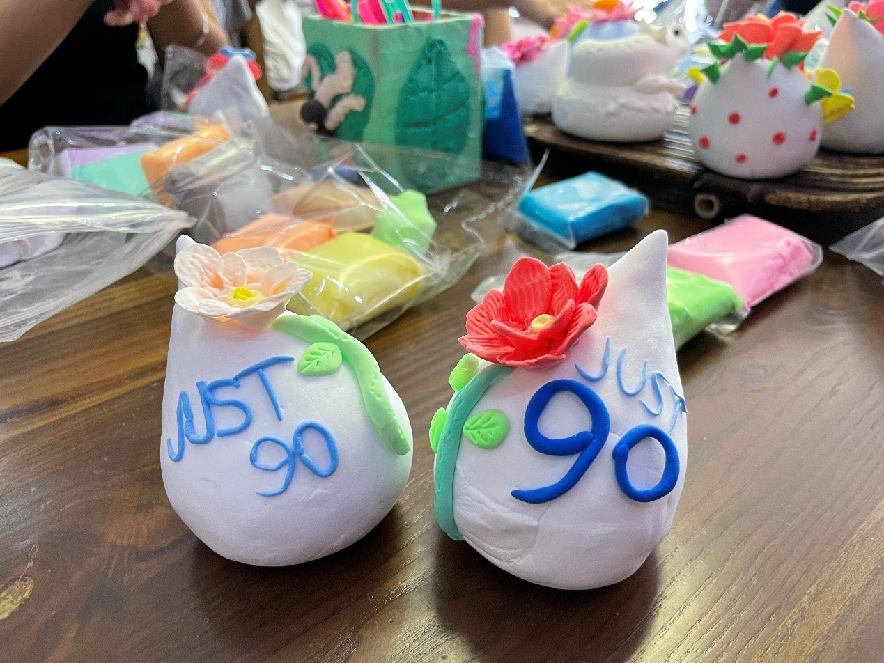 图为乐竞在线平台(中国)官网海洋学院实践团成员制作的校庆主题糏塑寿桃成品。