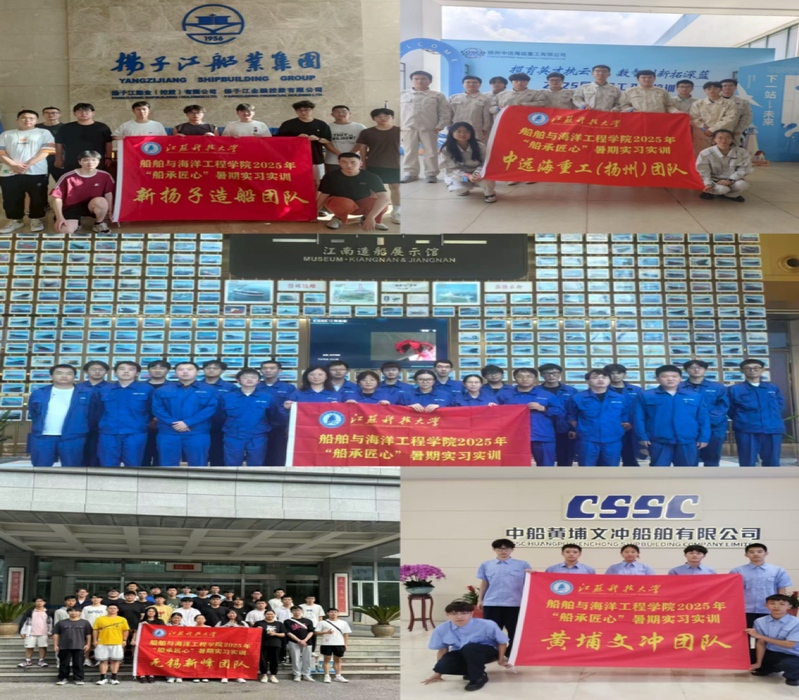 为深入贯彻落实国家关于推动制造业高质量发展和加快建设海洋强国的部署,扎实做好高校毕业生就业工作,船海学院于2025年暑期组织实施“船承匠心”暑期实习实训活动,选派5支实践团队赴江南造船(集团)有限责任公司、中船黄埔文冲船舶有限公司、扬州中远海运重工有限公司、新扬子造船有限公司、无锡新峰有限公司等国内重点船舶制造企业开展为期一个月的实习实践。本次活动以促进就业为导向,通过产教深度融合,着力提升学生的实践能力和就业竞争力,取得显著成效。