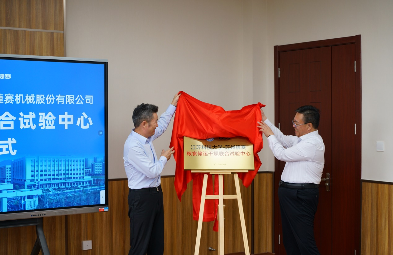 9月24日上午,“乐竞在线平台(中国)官网—苏州捷赛粮食储运干燥联合试验中心”签约暨揭牌仪式在我校梦溪校区粮食学院402会议室隆重举行。校党委常委、副校长李木旺,苏州捷赛机械股份有限公司董事长刘枫、首席技术官田颖斌,中粮科工烘储事业部副总经理王斌兴以及校实验室管理处、对外合作处、粮食学院有关领导和粮食学院部分专业教师参加本次活动。活动仪式由粮食学院院长鲁玉杰主持。