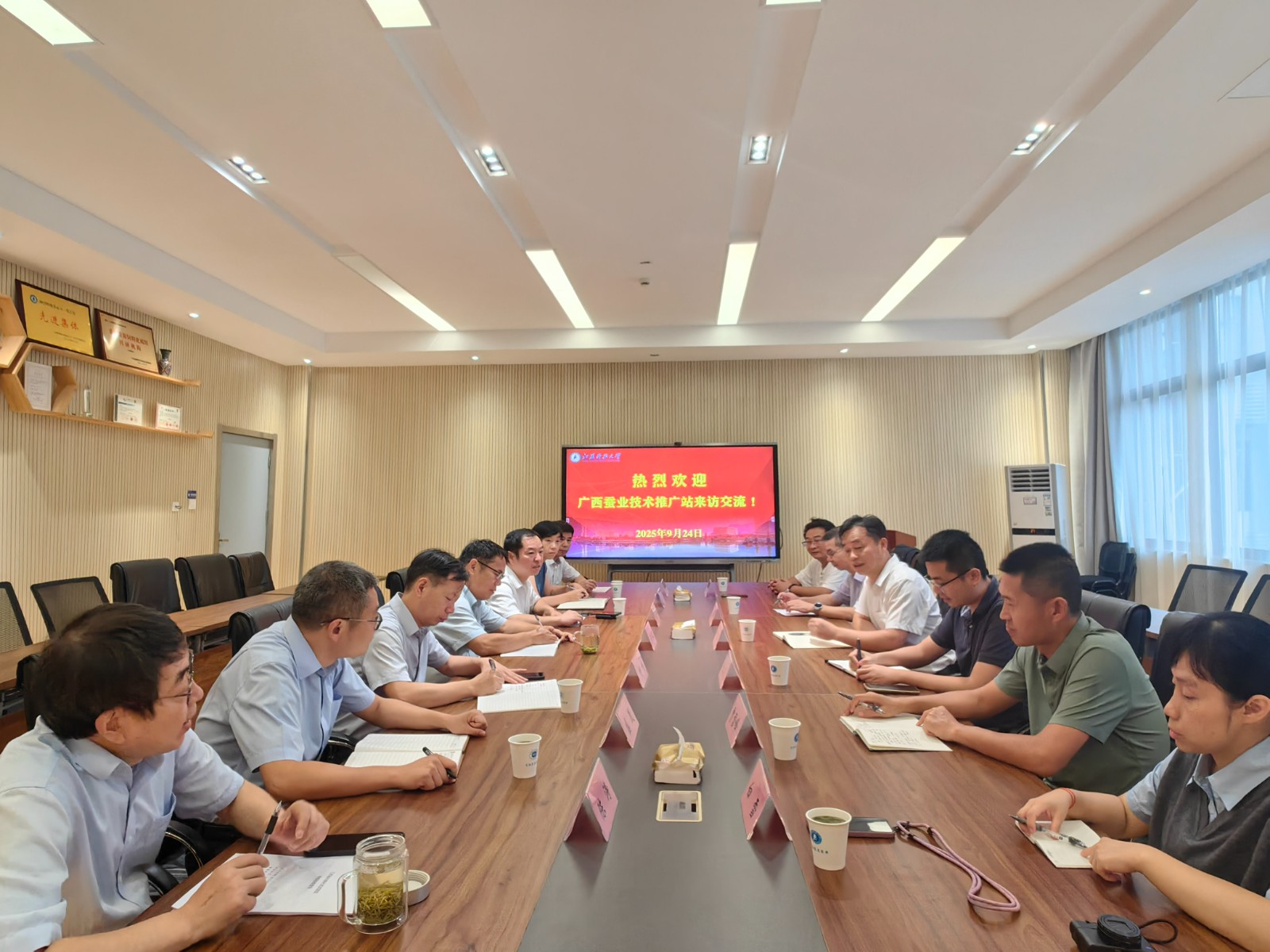 9月24日下午,广西蚕业技术推广站党委书记、站长卿军一行来校考察交流,校党委常委、副校长李木旺出席座谈会座谈会由生物技术学院、蚕业研究所党委书记钱平主持