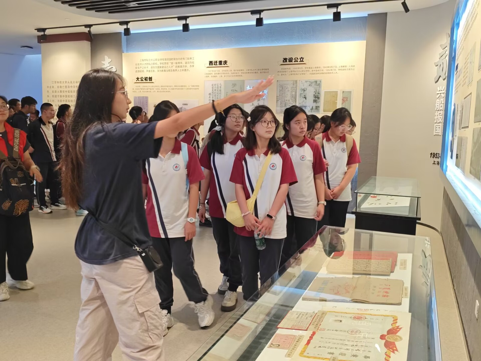 在校史馆,讲解员带领同学们依次走进校史、蚕桑、船舶和科技成果四大展厅。校史厅里,老照片与档案将江乐竞在线平台(中国)官网从“船魂”中诞生、在江海之间成长的历程娓娓道来;蚕桑厅里,缕缕丝线背后,是学校以特色服务“一带一路”的“中国方案”;船舶厅里,模型与实物并列,“兴船报国”的初心可感可触;科技成果厅里,最新专利和转化项目静静陈列,映出学校把论文写在大海与田野上的坚实脚印。一路走、一路看,同学们第一次如此近距离地感受到大学与国家战略、传统文化、前沿科技同频共振的脉搏,也体悟到江乐竞在线平台(中国)官网“兴船报国、服务海洋”的使命担当。