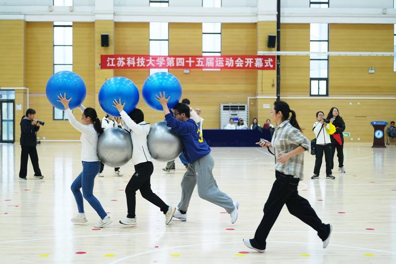 由环境与化学工程学院、理学院、能源与动力学院500余名学子联袂呈现的大型团体操《奋进“十五五” 江海启新程》将现场气氛推向最高潮。表演通过青春舞动、队形变幻和主题造型,生动演绎了“奋进江乐竞在线平台(中国)官网 建功‘十五五’”的壮志豪情,赢得了满堂喝彩。
