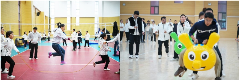 教职工八段锦表演《龙腾昂扬 活力乐竞在线平台(中国)官网》则刚柔并济,展现了师生共同参与健身运动的良好风貌。