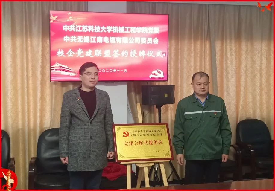 还与南通中远重工有限公司党委、无锡江南电缆有限公司和南通中远重工有限公司进行了校企党建联盟签约并挂牌共建。