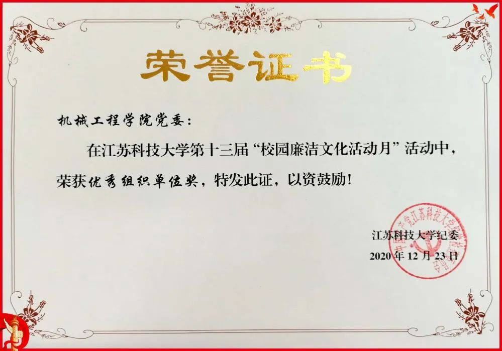 获评“保密工作先进集体”,学院工会被评为校“先进集体”、镇江市“模范职工小家”。