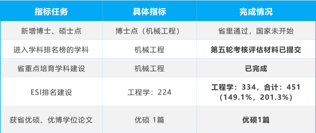 完成机械工程一级学科博士学位授权点申报工作,目前已通过省教育厅公示推荐;开展第五轮学科评估工作,完成了评估材料撰写与提交。