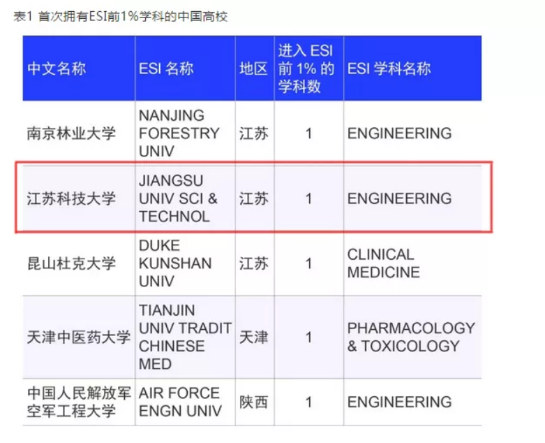 2018年,我校工程学率先进入ESI学科全球排名前1%,实现了零的突破;“十三五”期间,学校共有工程学、材料科学和化学3个学科进入ESI学科全球排名前1%;至“十三五”末,学校ESI总排名在中国大陆高校中居171位,其中工程学排名第106位,材料科学排名第81位,化学排名第150位。“ESI高被引论文数量”位列中国大陆高校排行榜103位,“ESI热点论文数量”位列83位。
