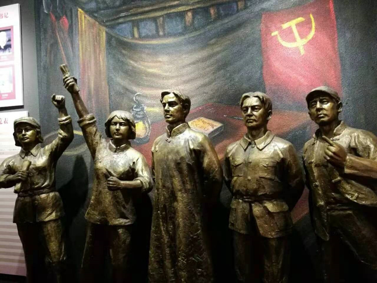 长沙地区第一个农村党支部旧址纪念馆:五位革命先烈铜像(从左至右:郑家奕、杨开慧、李维汉、黄则民、余西迈)
