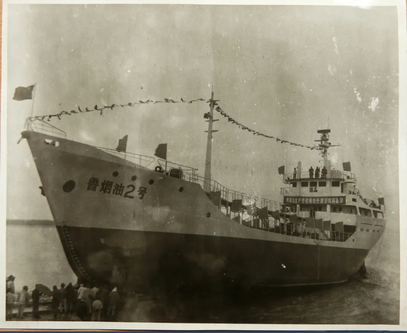 1978年镇江船校象山船厂生产出鲁烟2号下水剪彩