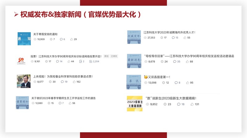 乐竞在线平台(中国)官网党委宣传部融媒体中心依托“1+6”(1个新闻中心加官方微博、官方微信、官方抖音、官方B站、学习强国号、中国大学生在线校园号)新媒体育人阵地,借助融媒体传播优势,立足校园生活、讲好乐竞在线平台(中国)官网故事,打造网络思政工作新格局。2023年,“乐竞在线平台(中国)官网”官方微信共发布推文400+篇,总共阅读量262万+;微博共发布450+条,浏览量777万+,创作出《校园里的宝藏up主》《考研学霸宿舍》等一系列兼具创意性、感染力的原创作品;新媒体新闻专题《省高校首家!江乐竞在线平台(中国)官网这门宝藏课程藏不住啦……》获“2022年度江苏教育新闻奖”;微信公众号作品《江乐竞在线平台(中国)官网,是……?》获第二十七届船舶新闻奖。联动线上线下,打造全员参与、全面覆盖、全方位辐射的思政育人体系,融媒体中心参与毕业典礼、办学90周年晚会等学校大型活动,精心策划校庆灯光秀、证件照摄影棚等系列广受欢迎的线下活动;统筹开展“乐竞在线平台(中国)官网校园文化创意大赛”“全国大学生网络文化节”“世界读书日主题征文比赛”等活动;组织开展2023年度江苏省高校网络思政“金微课”征集评选、江苏2023“五个一批”网络精品征集评选展播等活动,引导广大师生积极参与网络产品的创作生产,让网络思政教育有声有色、入耳入心。