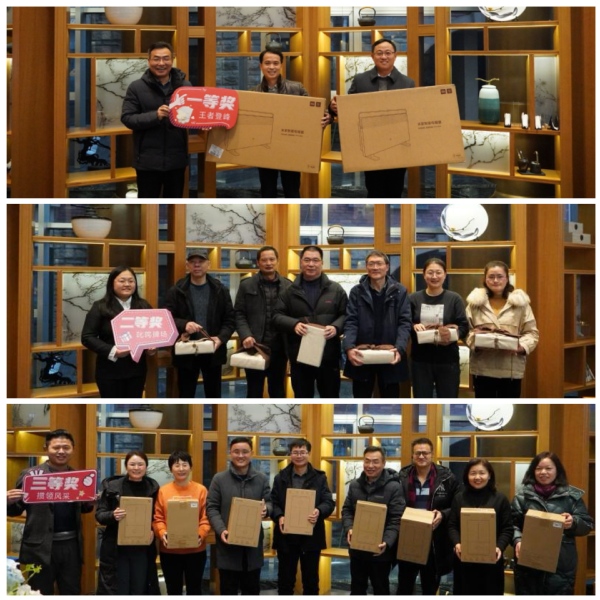 聚餐结束,工会干部迎新年掼蛋比赛在“蓝城.南山浅水湾”如期举办。在裁判长黄士新老师宣读了比赛规则后,比赛正式开始。选手们全神贯注、默契配合、斗智斗勇、充满乐趣,达到了以牌会友、以赛联谊的目的。比赛最终评出了2组一等奖、3组二等奖、4组三等奖。学校工会主席景旭文、工会副主席刘剑、蓝城南山浅水湾客户经理王犇分别为一二三等奖获得者颁发了奖品。工会迎新年联欢活动在大家的欢声笑语中圆满结束。